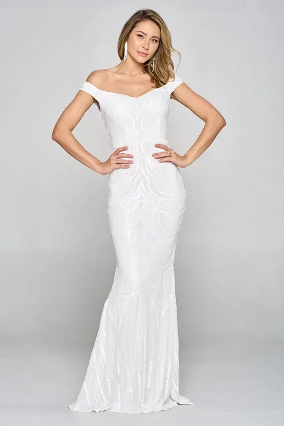 Off Shoulder Sequin Evening Gown