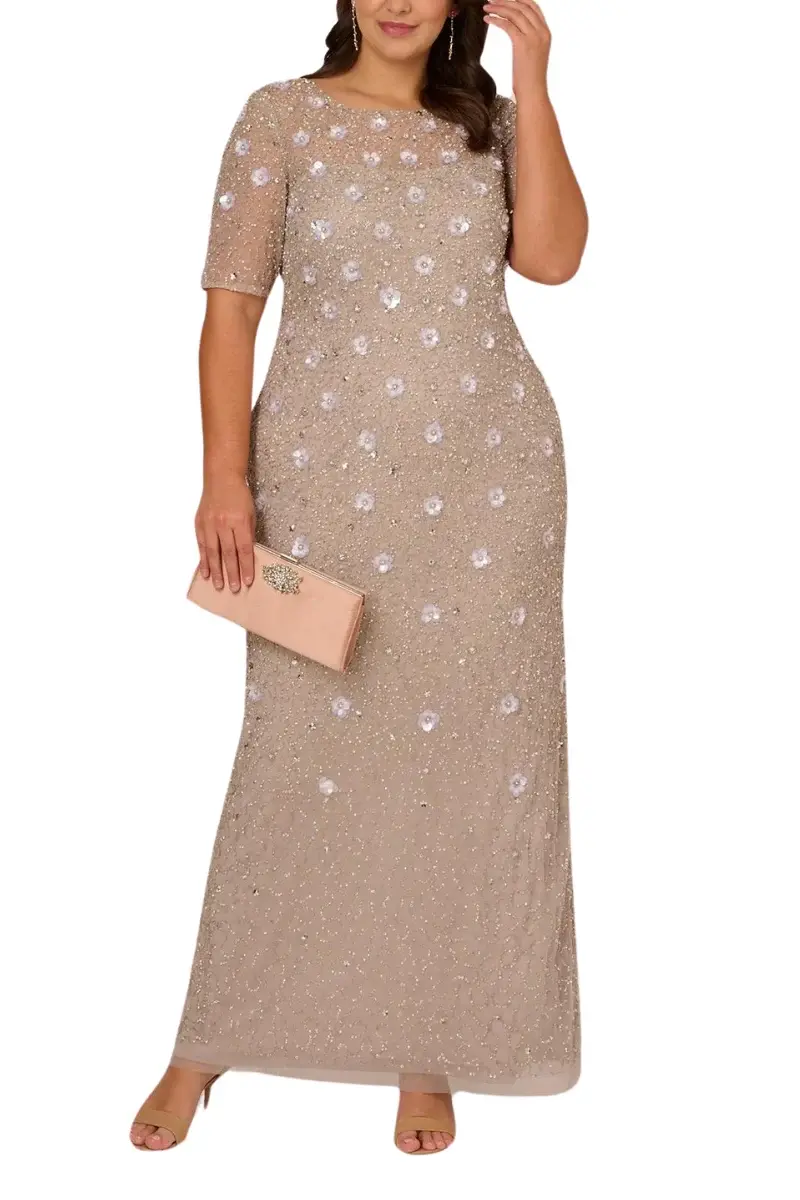 Adrianna Papell Beaded Sheath Gown (Plus Size)