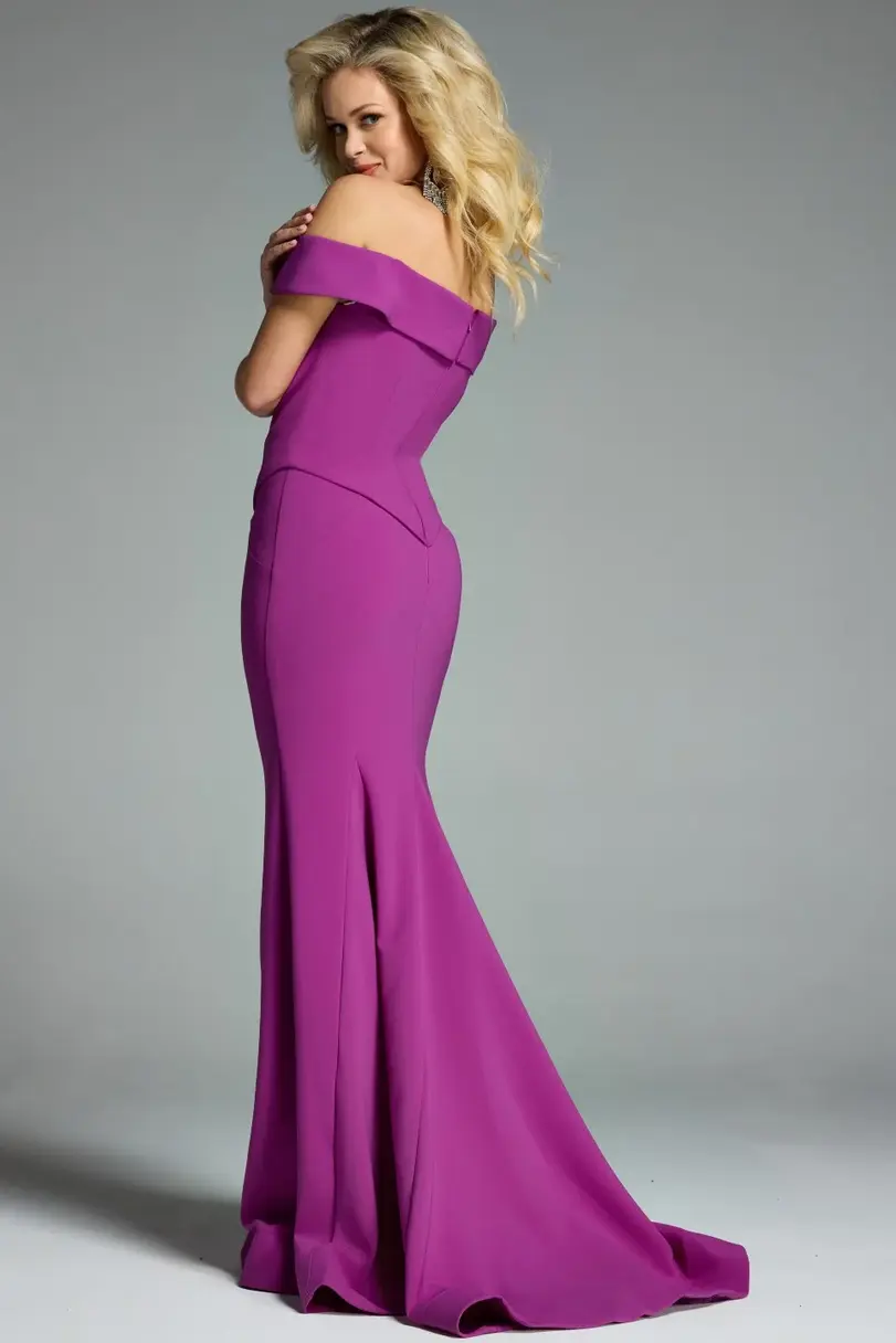 Jovani Off-Shoulder Fitted Gown with Folded Neckline 44861