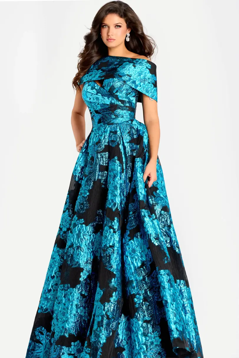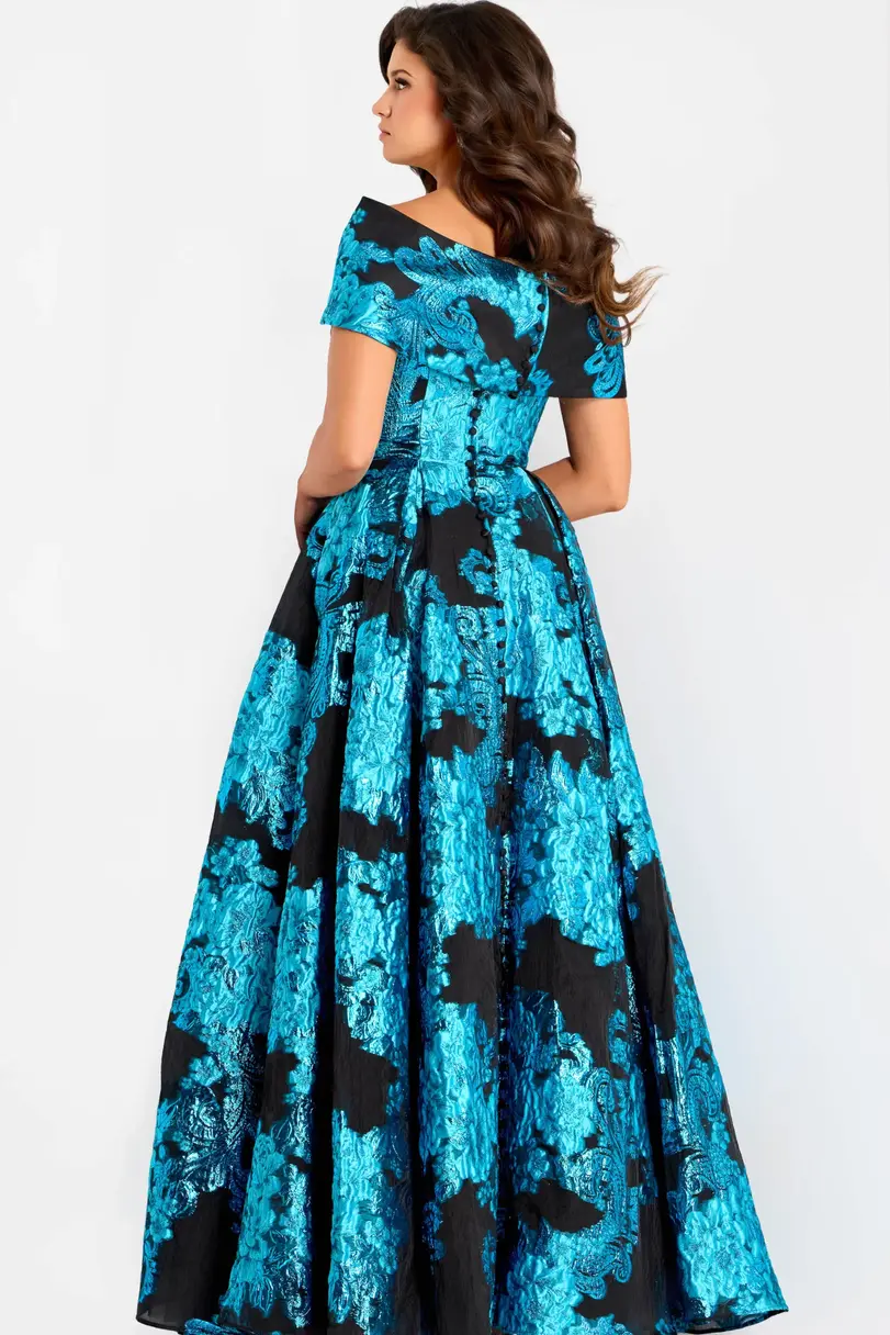 Jovani Off Shoulder Metallic Jacquard Ball Gown 47630