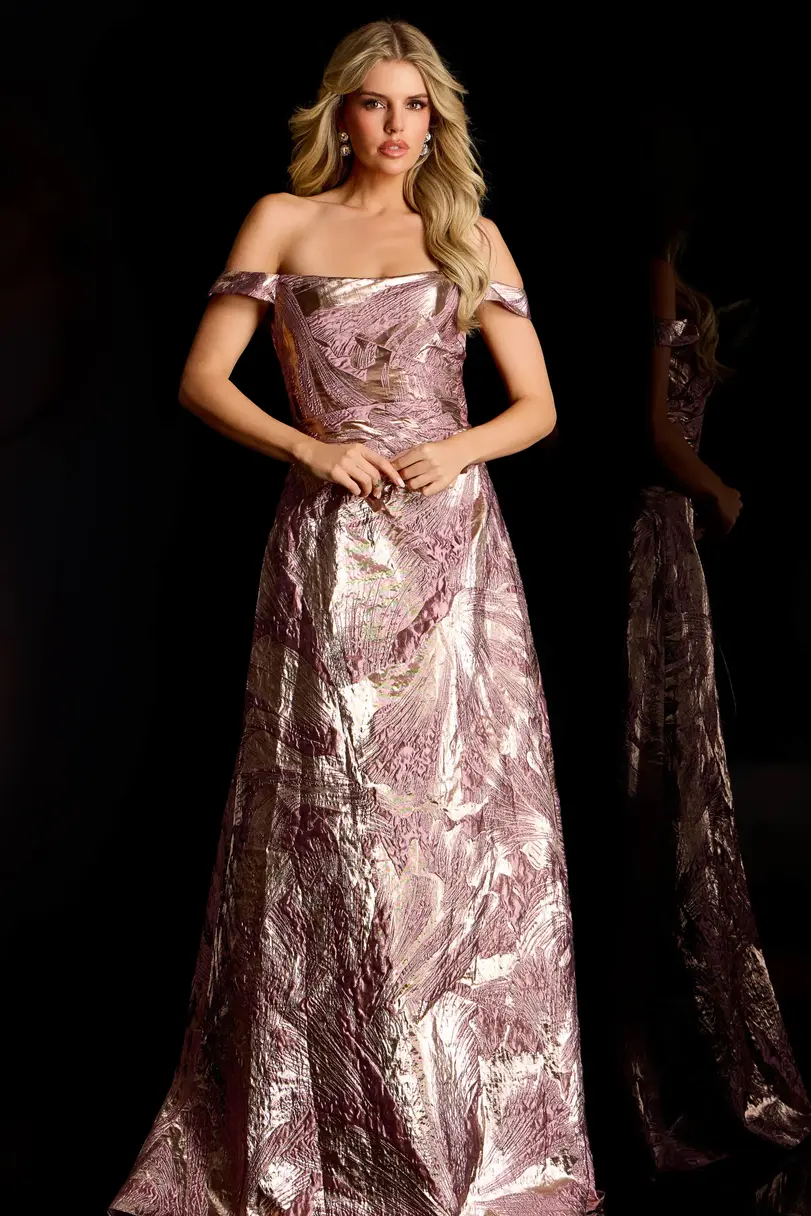 Jovani Off Shoulder Metallic Jacquard Gown 44718