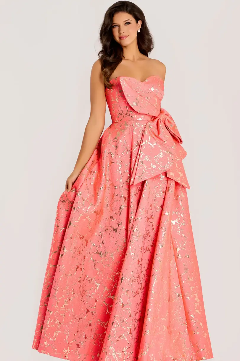 Step into the spotlight in the Jovani Strapless Metallic Jacquard Gown 48657, an exquisite masterpiece available at Opulence Fashions. This stunning gown features intricate metallic jacquard fabric that glistens with every movement, making you the center of attention at any event. Designed for the modern, sophisticated woman, this strapless silhouette perfectly blends elegance and contemporary style. At Opulence Fashions, we pride ourselves on offering luxurious, high-quality pieces that elevate your wardrobe—experience the ultimate in glamour with the Jovani Strapless Metallic Jacquard Gown 48657.