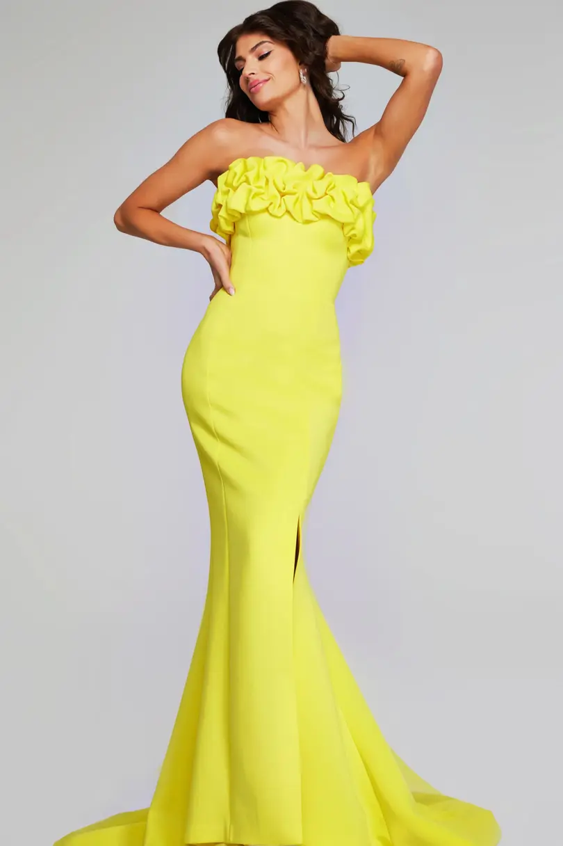 Jovani Stunning Strapless Yellow Gown with Ruffled Bodice 38922
