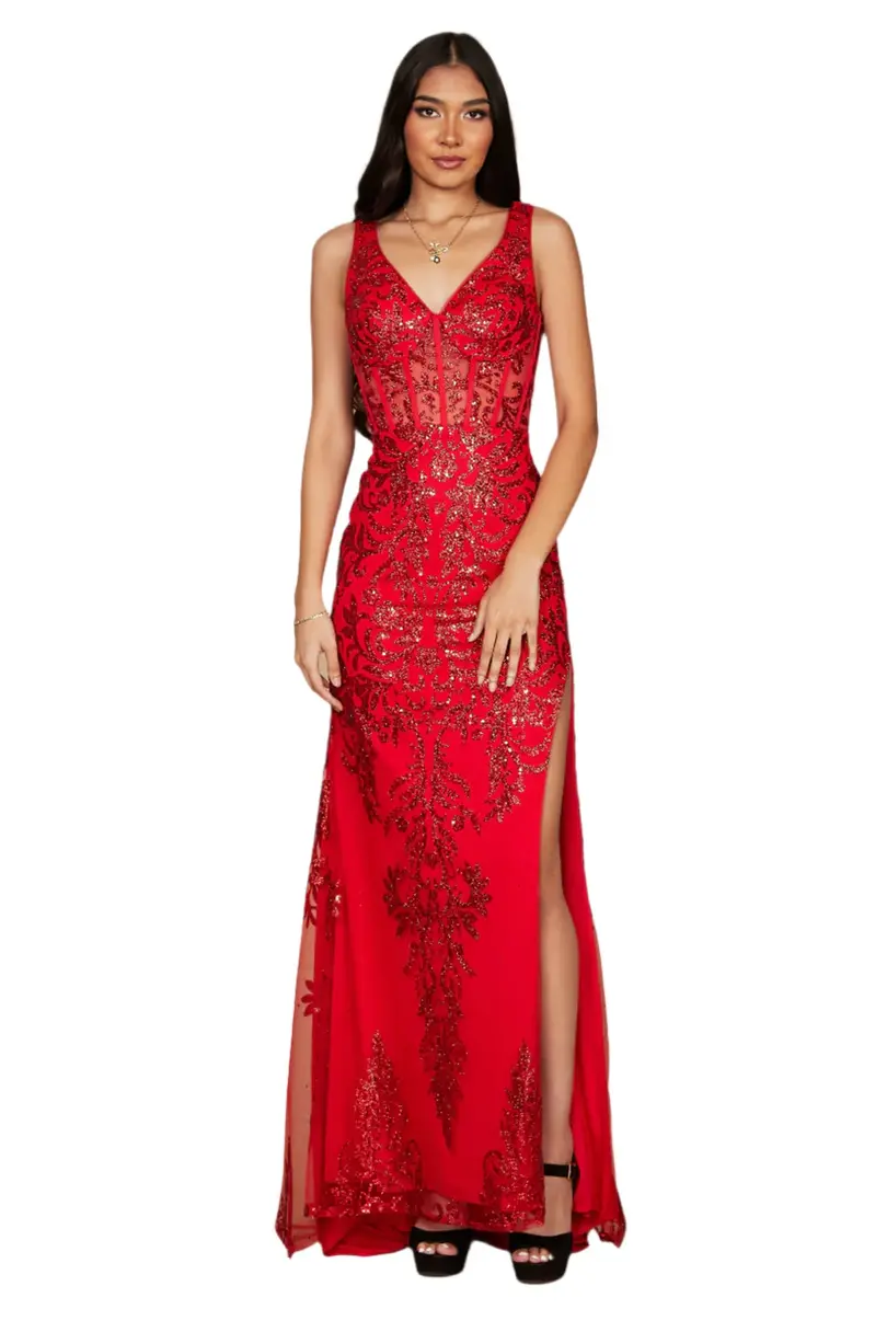 Kos Couture Sequin Corset-Style Bodice Formal Gown Prom Dress
