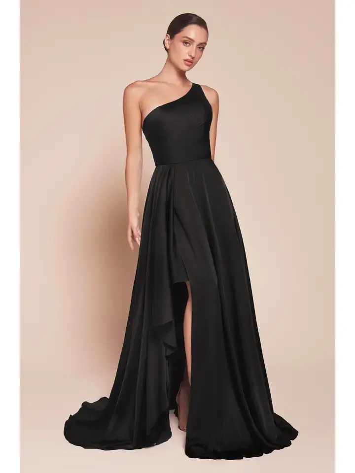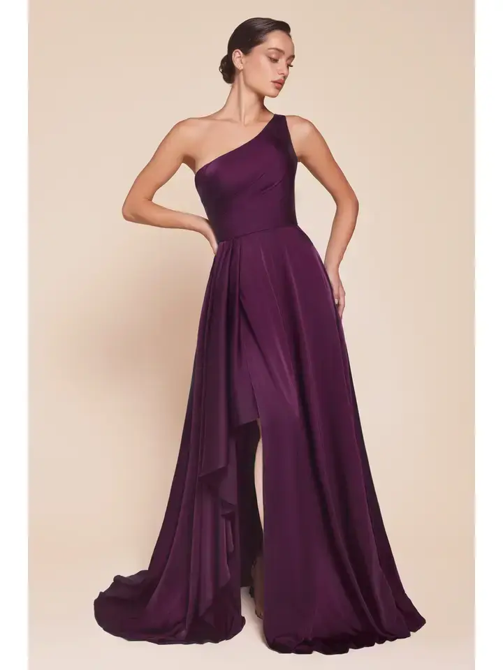 This elegant A-line long dress features a chic one-shoulder design and a flowing asymmetrical skirt crafted from soft satin. The fitted bodice beautifully complements the flowy skirt, creating a graceful silhouette. Ideal for bridesmaids, wedding guests, or formal events, this dress exudes timeless sophistication. Key Features: Silhouette: A-line long dress Design: One shoulder & flowing asymmetrical skirt Fabric & Material: Soft satin Fit Detail: Fitted bodice & flowy skirt Occasions: Ideal for bridesmaids, wedding guests & formal events