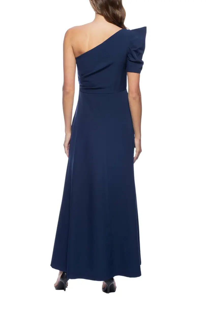 Marina Scuba Crepe One Shoulder Puff Sleeve Overlay Skirt Jumpsuit Dress