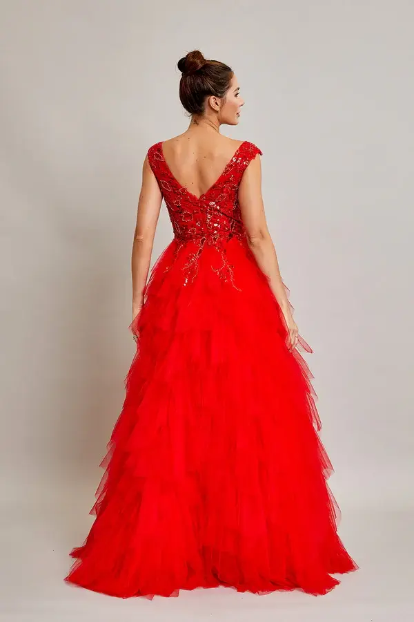 SLEEVELESS, V-NECK, A-LINE, BALLGOWN